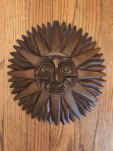 Incan Sun God, Hand Carved Wooden Art Display, Vintage, 1980's