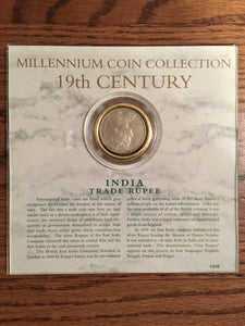 19th Century India Trade Rupee, Authentic 1900 Silver Coin in Descriptive Case from 1997