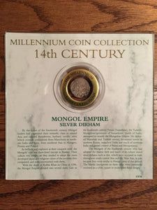 14th Century Mongol Empire, Authentic Silver Dirham Coin in Descriptive Case from 1997