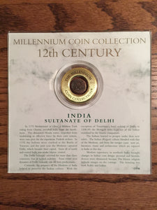 12th Century India Sultanate of Delhi, Authentic Bronze Coin in Descriptive Case from 1997