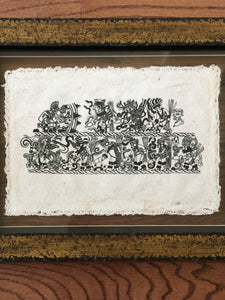 Chichen Itza, Mayan Sun and Snake Warriors Art Print in Frame, Vintage, 1990's
