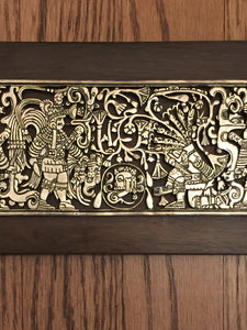 Chichen Itza, Desktop Mayan Ball Court Procession Metal Relief Art, Vintage, 1970's